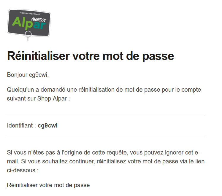 Cliquer sur le lien « Mot de passe perdu? » Mot de passe perdu – Shop Alpar